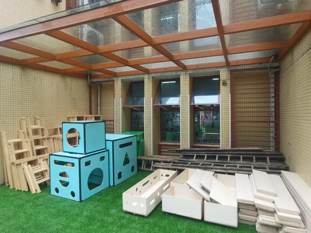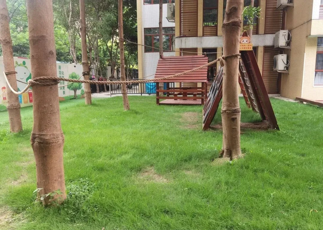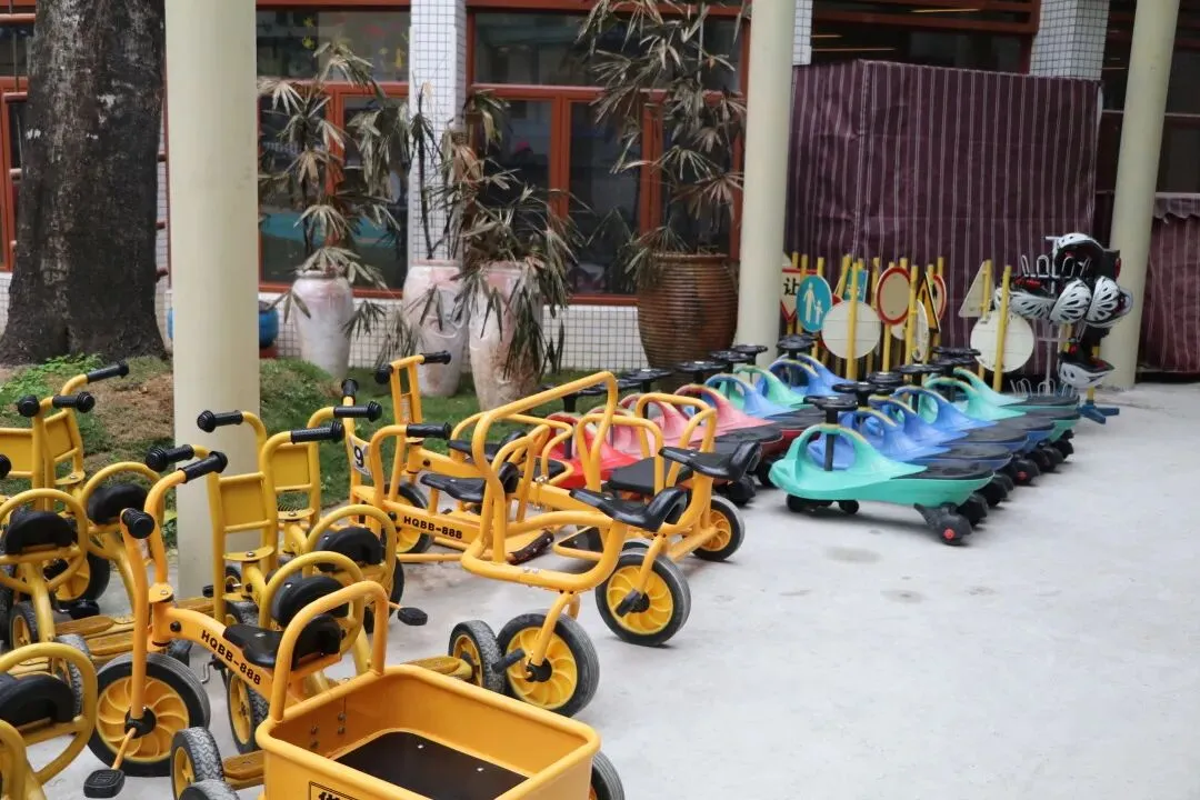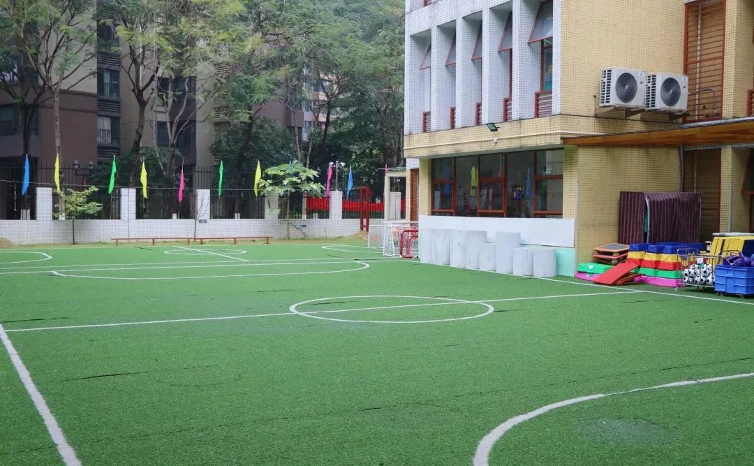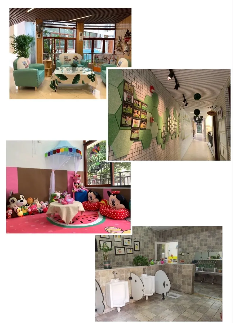 园区共占地面积5399平方米,建筑面积4543平方米,户外活动面积3886平方米。园舍布局合理,有大型玩具及大面积的塑胶地垫、儿童足球场和儿童篮球场,园区内设有攀爬区、戏水区、种植园、玩沙区、平衡游乐区、儿童休闲区等场地供幼儿活动和游戏。各场所功能明确、场地独立完整、光线充足、周围环境无污染,做到一室一角皆为教育所用,一花一草皆为孩子所乐。每班配有幼儿活动室、盥洗室、睡室,一体化的空间方便幼儿生活和游戏。