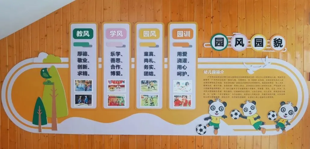 我园先后被授予:“广州市白云区区一级幼儿园”、“无烟单位”、“区‘指南’实验园”、“全国足球特色幼儿园”、“全国足球特色幼儿园示范园”、“安吉游戏推广全国试点园”、“广州市安全文明校园”等多项荣誉。