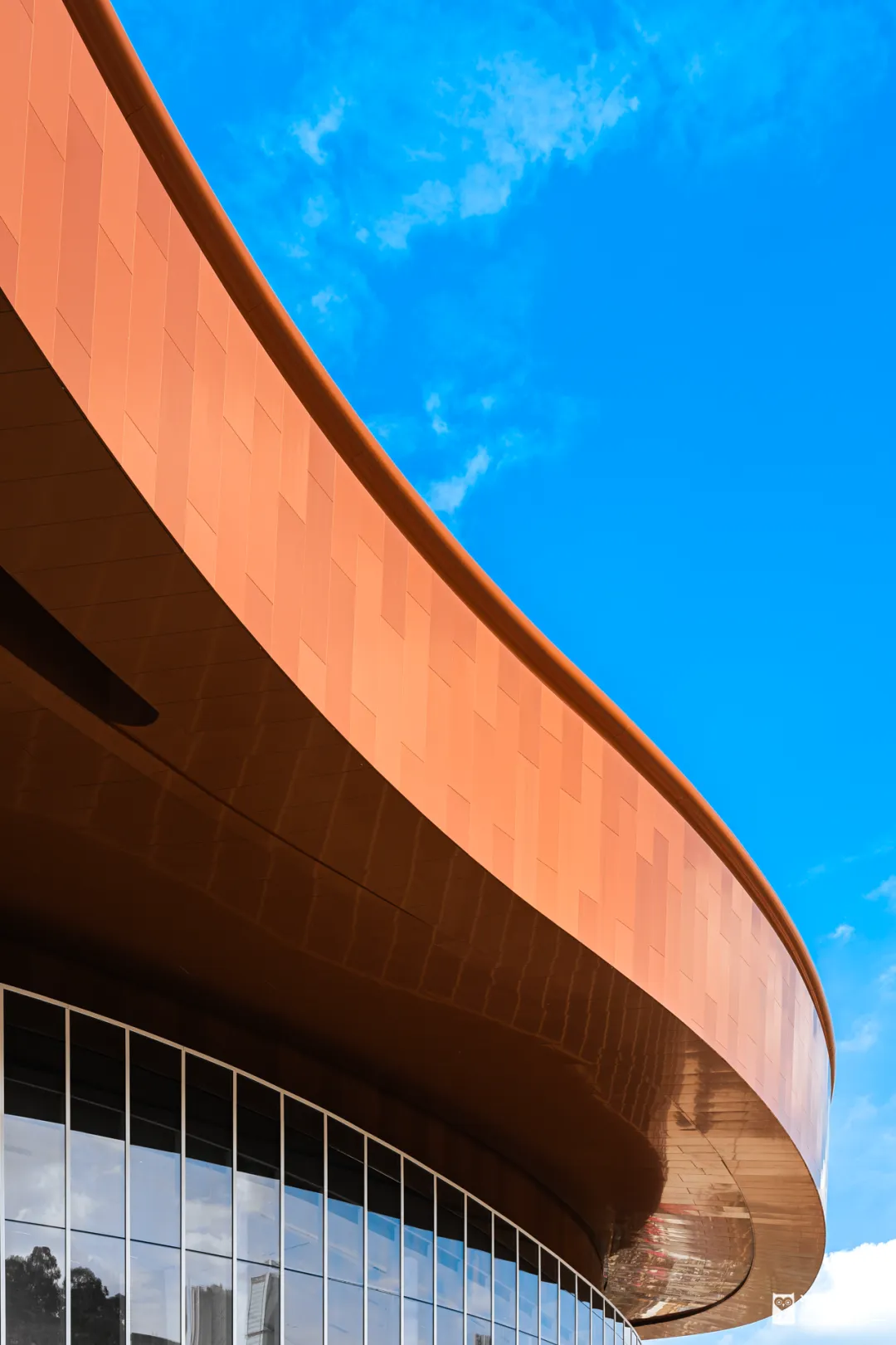 先看外立面,视线所及之处,那些拼接的铝板全是流动的弧线。