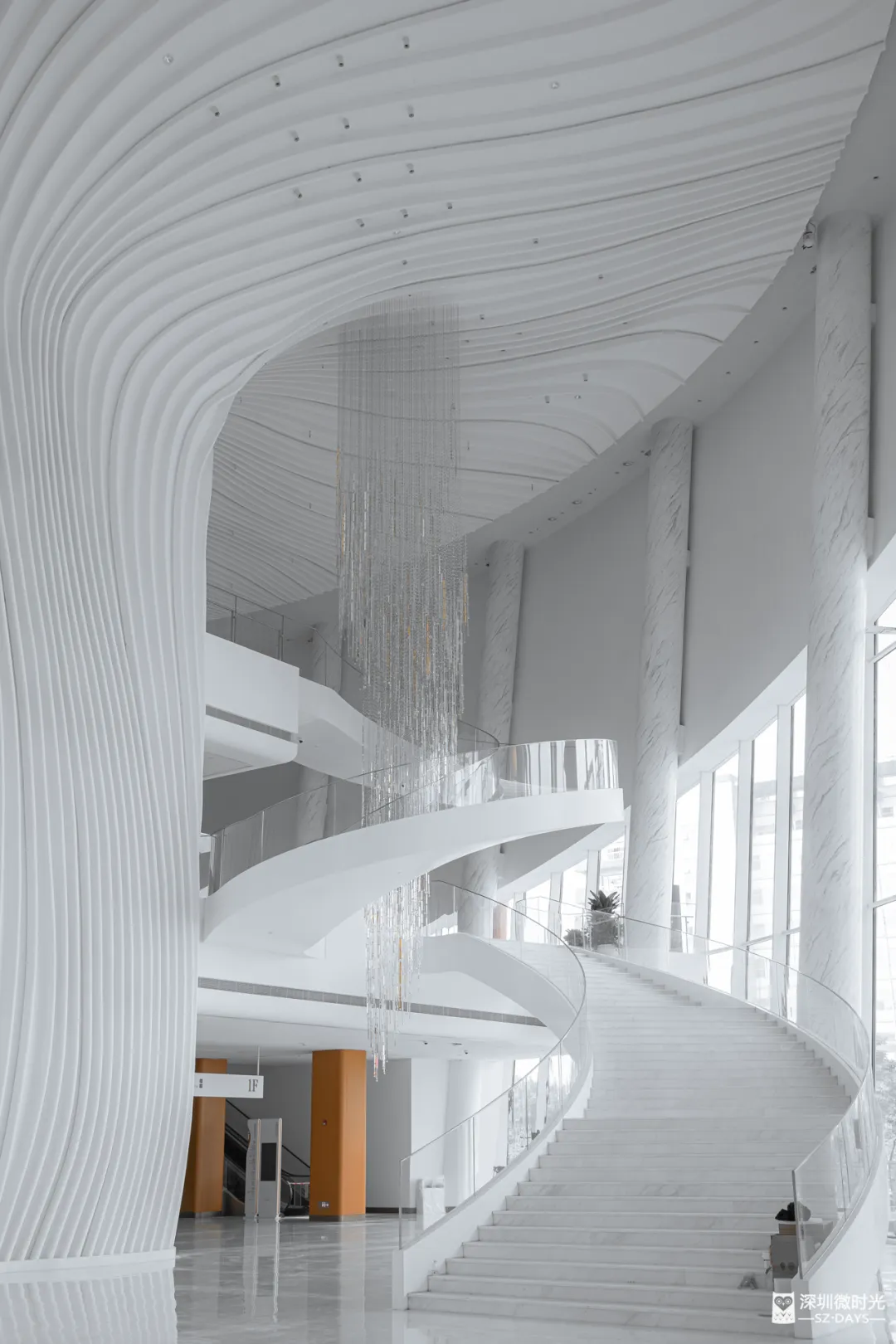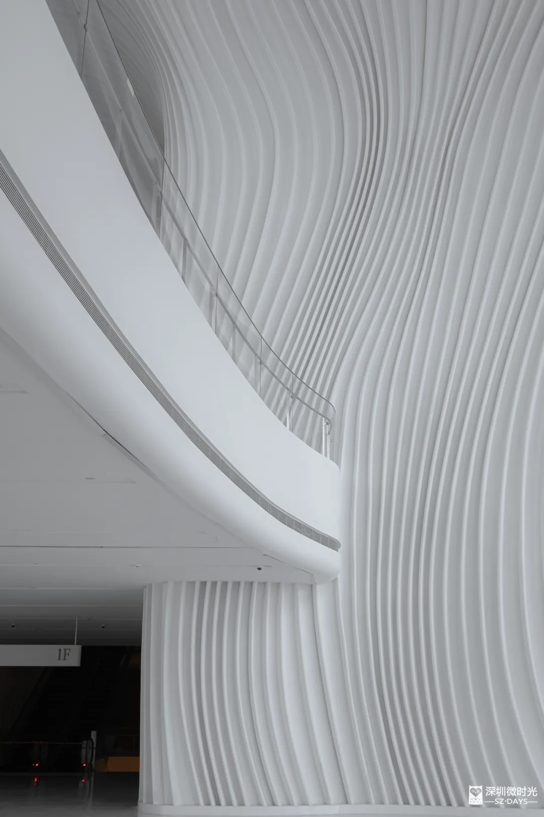大厅的墙面延续了柔和的曲线设计,让这个本该笨重的巨型混凝土建筑,看起来意外地轻盈 。