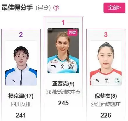 亚塞克:总得分榜第1️⃣,扣球得分榜第2️⃣