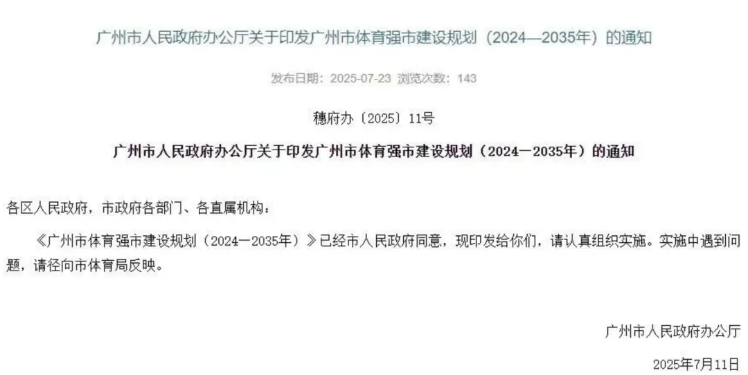 早在2025年7月,广州市政府印发《广州市体育强市建设规划(2024—2035年)》,明确提出,推进粤港澳大湾区联合申办世界杯等国际赛事。