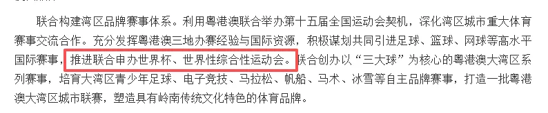 换句话说,广州要联动大湾区,推动申办世界杯。