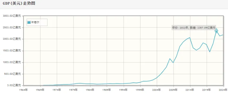 以上届世界杯东道主卡塔尔为例,其在2010年赢得2022年世界杯主办权后,2011年GDP增速冲到19.6%,创16年新高;2022年举办赛事后,GDP飙升至2262亿美元。