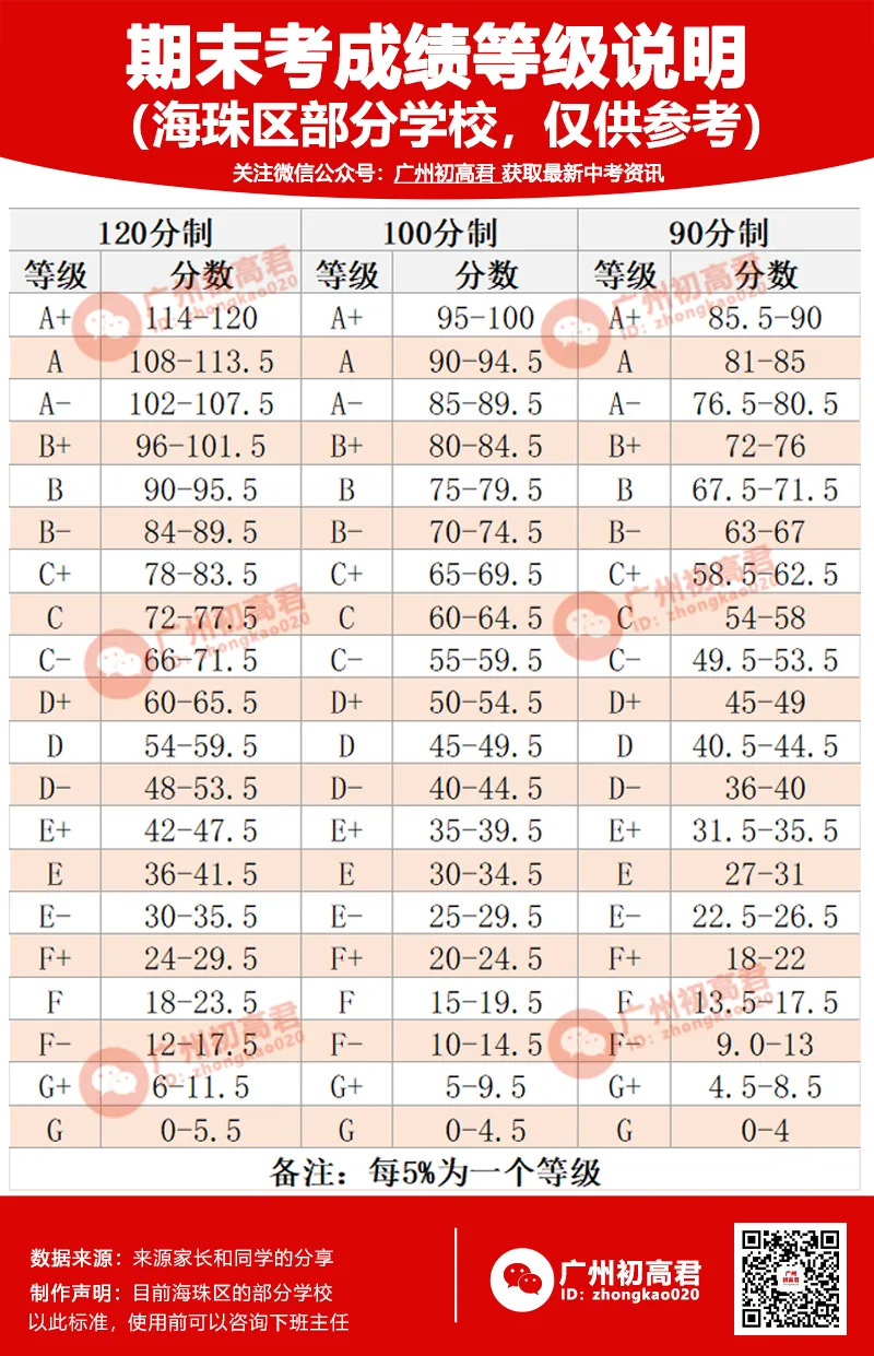①海珠区部分学校往年等级参考: