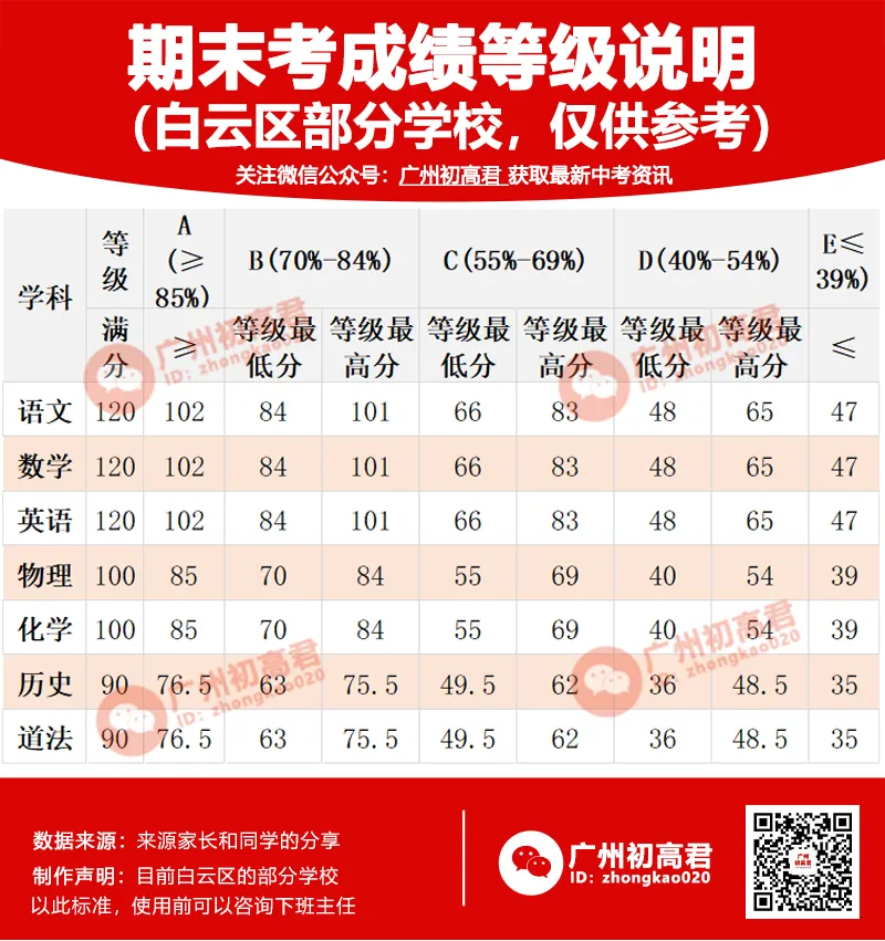 ②白云区部分学校往年等级参考: