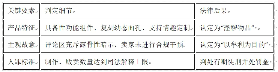 这种标准的转变意味着,珠三角的企业不能再单纯依据“我没有直接生产真人的淫秽视频”来抗辩。当生产的实体娃娃在物理属性上被认定为具备未成年特征时,该产品本身即可能被视为淫秽物品的载体 。
