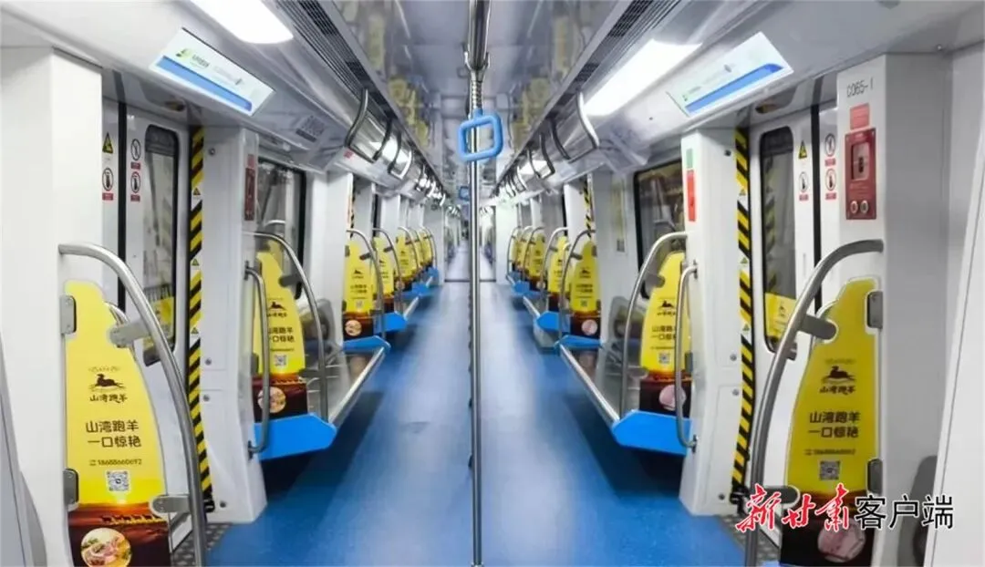 东莞市地铁一号线的车厢里,座椅后方等位置打上了“山湾跑羊”的广告语。图片由新甘肃·甘肃日报通讯员 孙振海摄