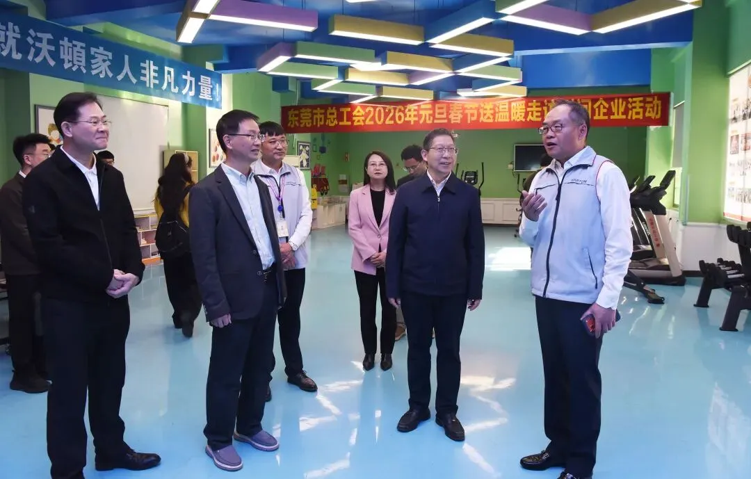 慰问组首先来到东莞市沃顿印刷有限公司,向企业赠送了一批体育健身器材,以实际行动支持企业丰富职工业余文化生活。随后深入生产车间、职工活动中心等地,与企业负责人面对面交流,详细询问生产经营状况、工会组织建设进展及发展面临的实际困难,认真听取企业诉求与改进建议。王业宽寄语企业要充分发挥工会桥梁纽带作用,做实做细职工关怀服务,搭建多元化技能提升平台,为职工营造稳定安心的就业环境。
