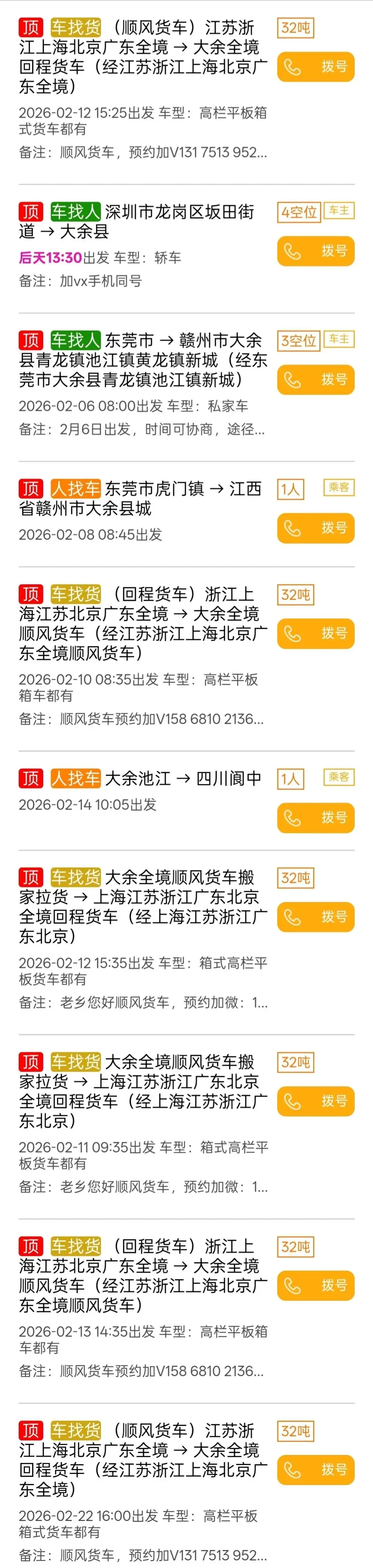►【大余新建拼车群】拼车汇总!大余→北京等地1800余条信息......