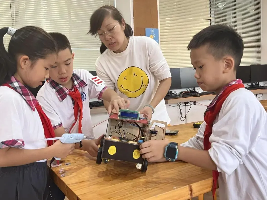 近年来,学校在创客教育方面成果斐然,先后获得中央电教馆《创客背景下的校本课程开发研究与实践》和中国教育科学研究院《创客普及课程开发研究与实践》两个国家级课题的立项并圆满结题,最新市级课题《学校STEM课程开发与建设研究》于2025年12月已顺利结题。学校获评“全国首批STEM教育2029创新行动计划种子学校”,组队参加中国机器人技能大赛全国总决赛摘得亚军。截至目前,学校获得广东省首届中小学科技教育特色课程特等奖,广东省STEM案例评比荣获二等奖、三等奖,累计优秀创客课例多个。教师们参加各级科技创客比赛获奖频频,曾获得全国“优秀创客导师”“优秀科技辅导员”“优秀园丁奖”等。