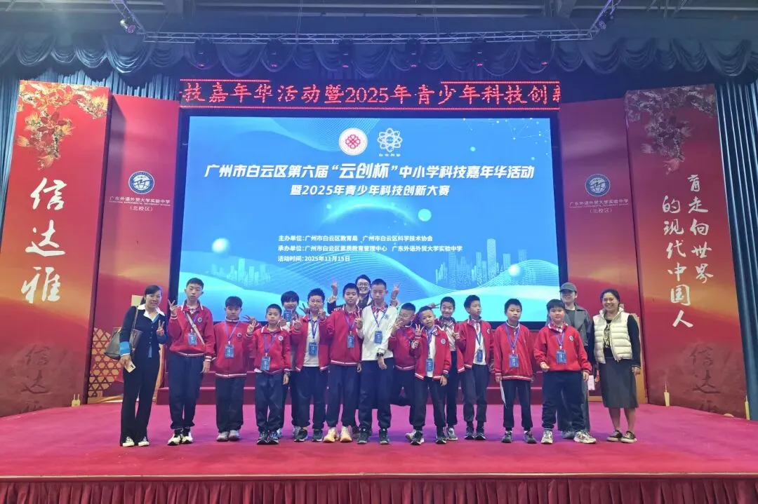 2025年,师生在市级及以上比赛获得14项大奖:包括在第40届广州市青少年科技创新大赛中获得一等奖2项、二等奖2项、三等奖1项;在广州市学生数字素养提升实践大赛中获得一等奖1项、二等奖1项、三等奖4项;在广州市科技创客电视大赛中获得三等奖1项;在广州市人工智能教学平台创意编程活动中获得一等奖1项、二等奖4项、三等奖4项。学生还获得区级各类比赛奖合计22项,涵盖人工智能编程、天文、观鸟、数字素养、科技创新大赛等12类赛事。