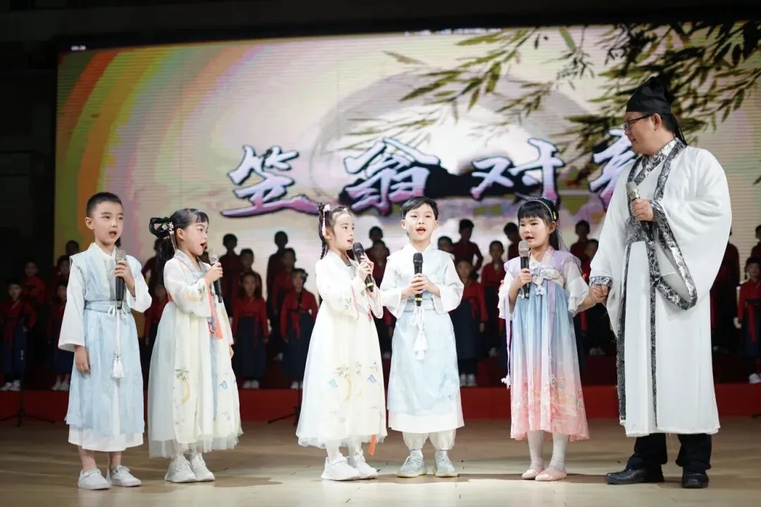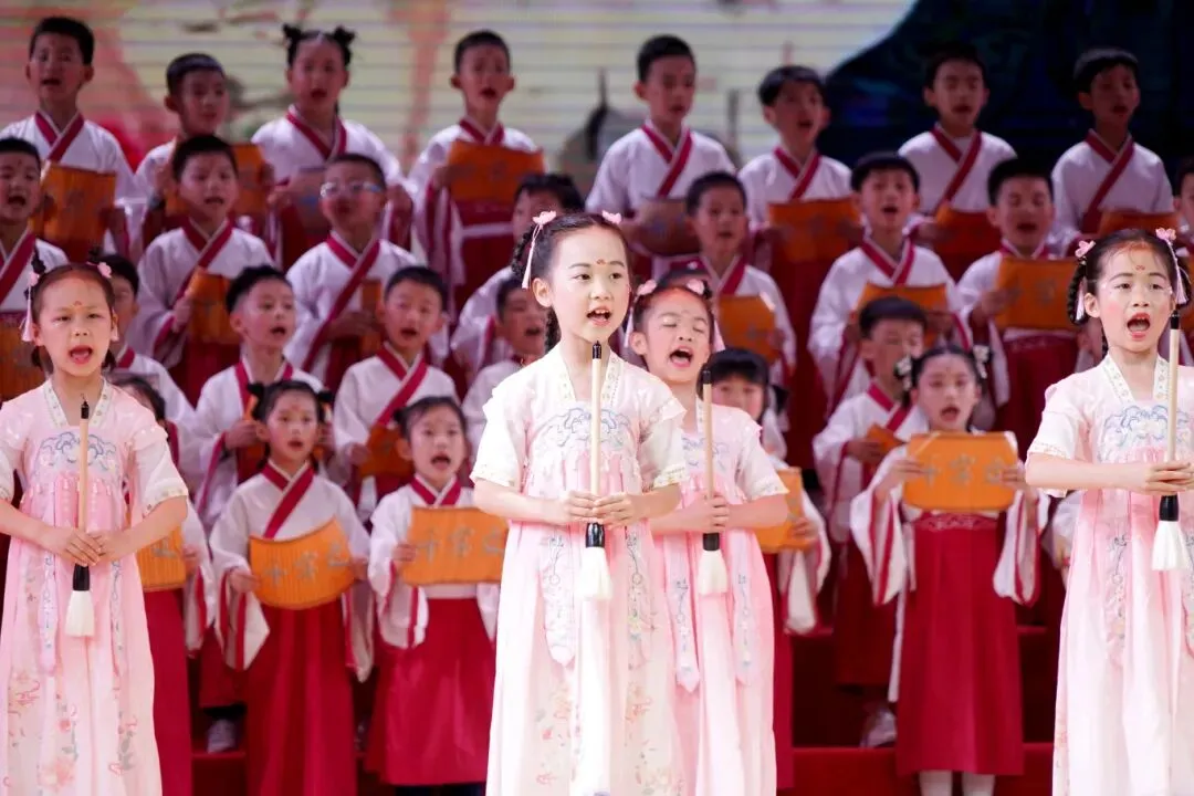 学校坚持全面开展国学经典教育,将《三字经》《百家姓》《声律启蒙》《世说新语》《论语》《孟子》《中华经典素读范本》《小学生必背古诗词75+80首》等作为国学课本,各年级开设每周一节的经典阅读课,定期举办经典诵读系列活动,将中华经典教育融入课堂教学与日常活动中。通过“诵经典诗文,寻名人足迹”的研学之旅,同学们不仅饱览了祖国大好河山,领略了灿烂的中华传统文化,还开启了与古人跨越时空的交流。