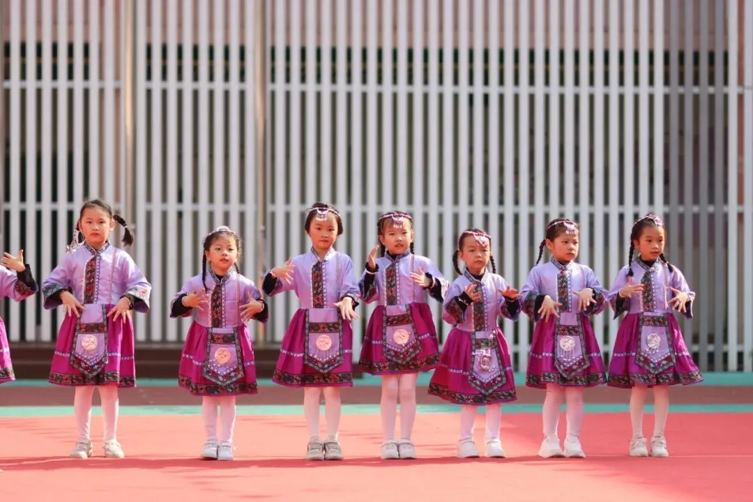 女孩们化身苗家小妹,百褶裙舞似彩云,银饰叮当伴步摇。