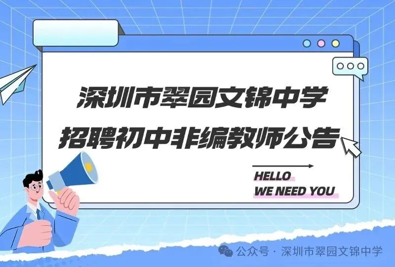 深圳市翠园文锦中学是深圳市罗湖区教育局所属公办中学。学校因发展需要,现公开招聘非编教师。