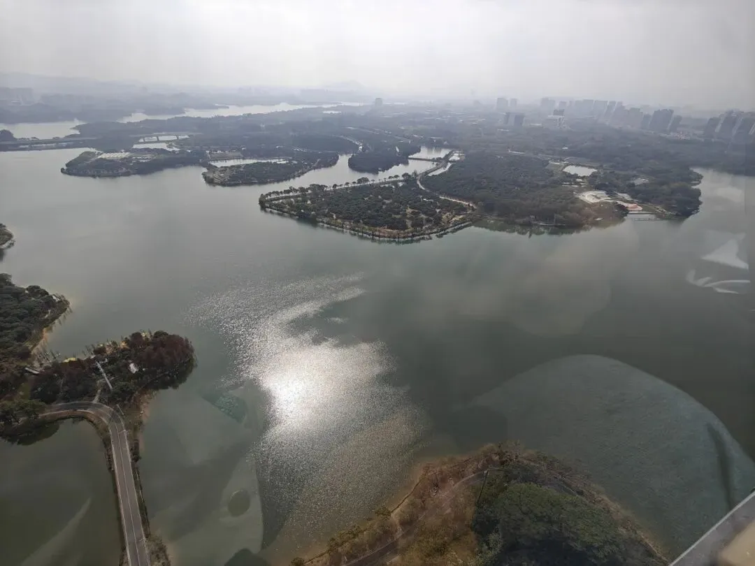 13时05分,直升机从东莞石排镇飞行基地缓缓起飞,按规划航线向深圳盐田方向飞行,中途还特意在松山湖幽兰里进行悬停,让乘客近距离欣赏松山湖片区的空中景致。
