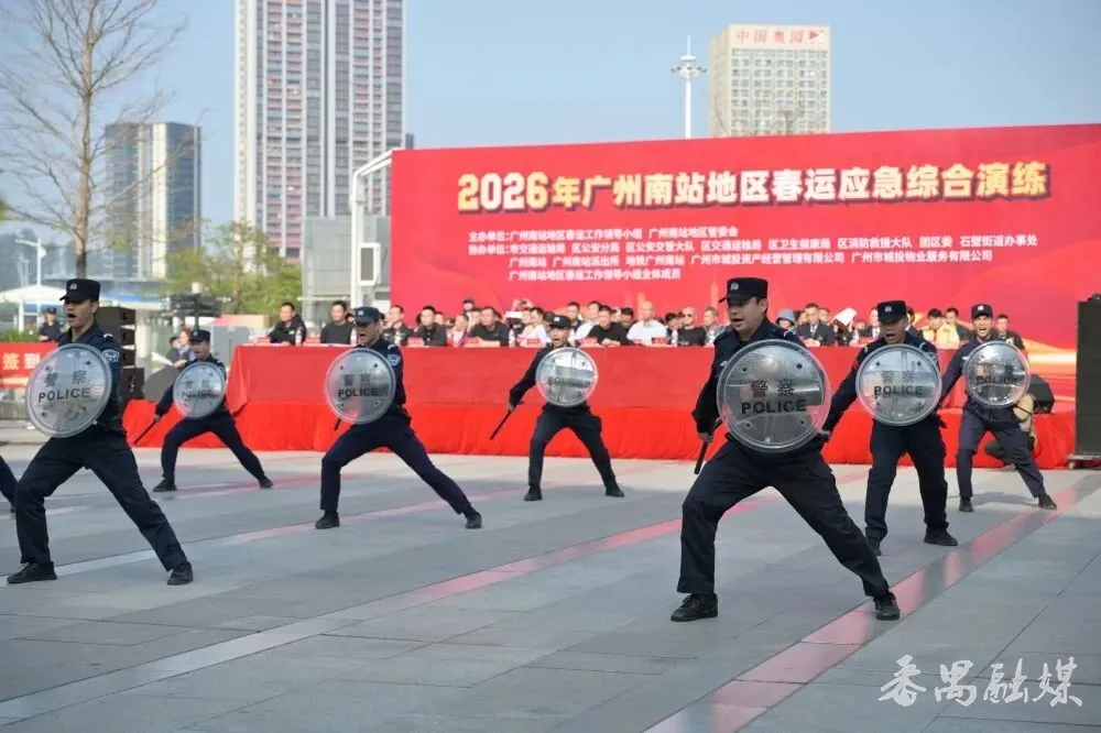 2026年春运将于2月2日拉开序幕,面对即将到来的出行高峰,1月28日下午,广州南站地区春运工作领导小组在詹天佑广场组织开展2026年春运应急综合演练。演练由广州南站地区春运工作领导小组牵头、近二十个部门单位参与,旨在通过实战化演练,全面检验并提升路地联动的应急处置效率,为守护千万旅客平安旅途筑牢防线。各个部门在演练现场严阵以待