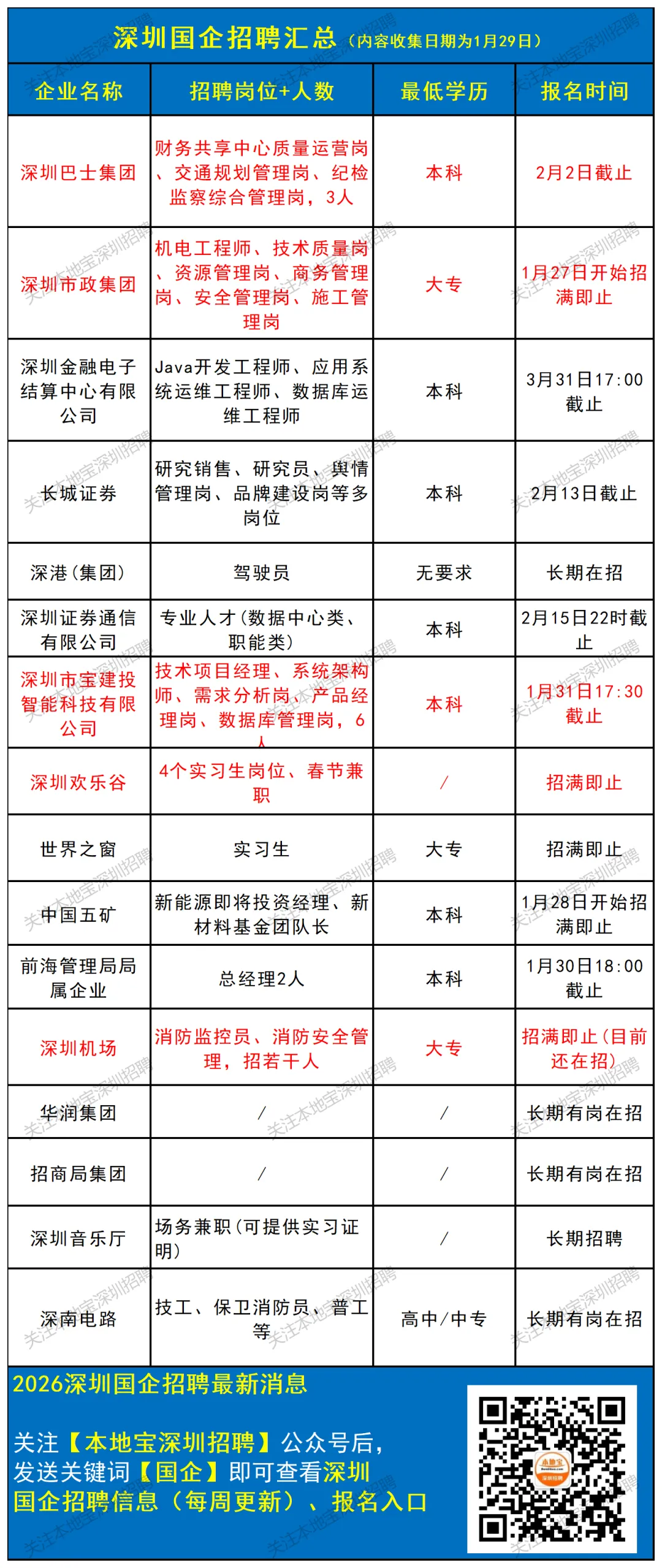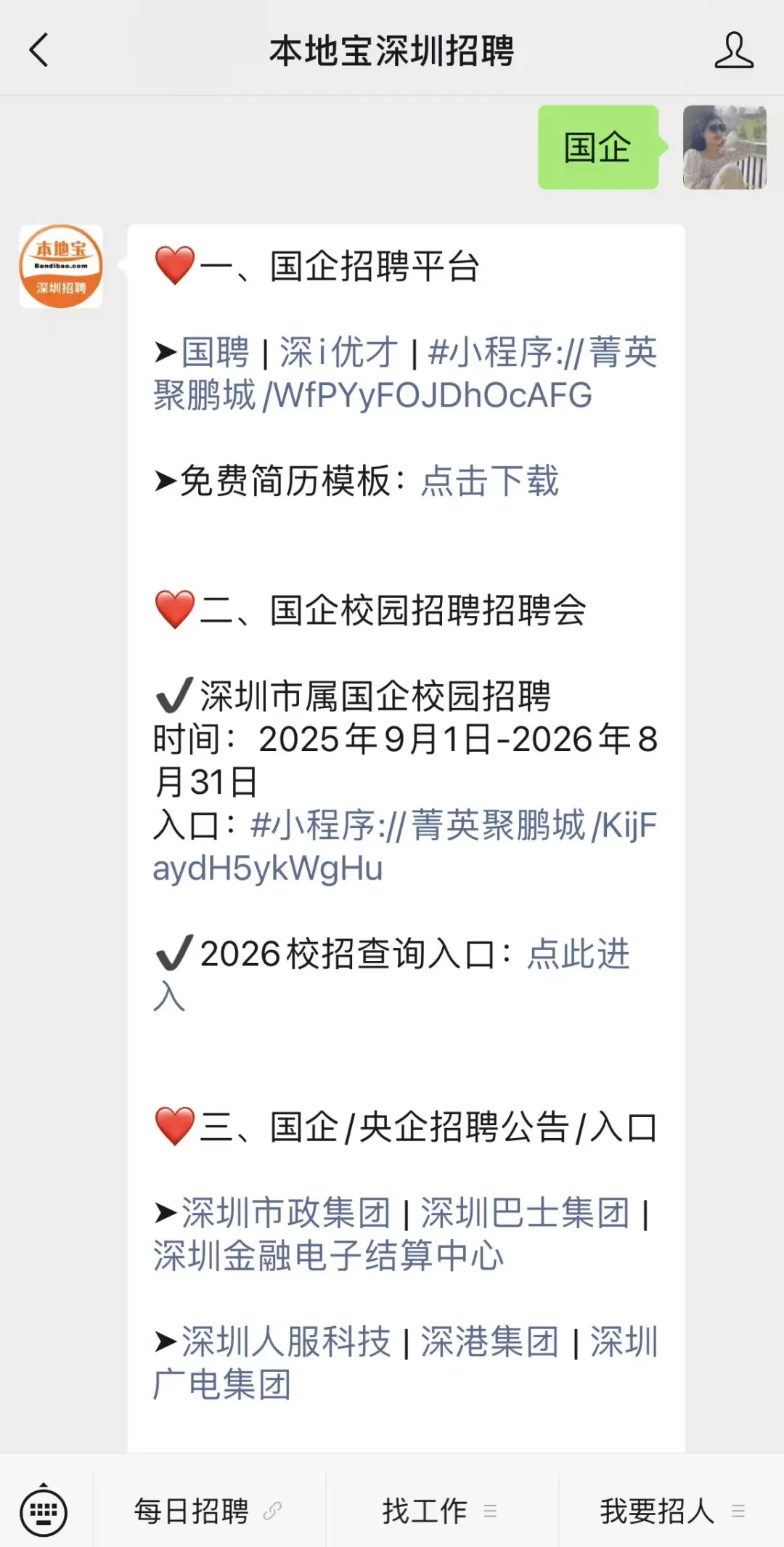 ⭐推荐服务:扫描下方二维码,关注【本地宝深圳招聘】公众号,回复【国企】,即可获取深圳国企招聘最新公告+岗位详情、报名入口、岗位查询