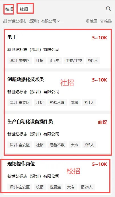 社招:电工1人、生产自动化设备操作员5人、创新数据化技术类1人,其中后两个岗位应届生也可以投递。中专/中技/高中、大专有岗