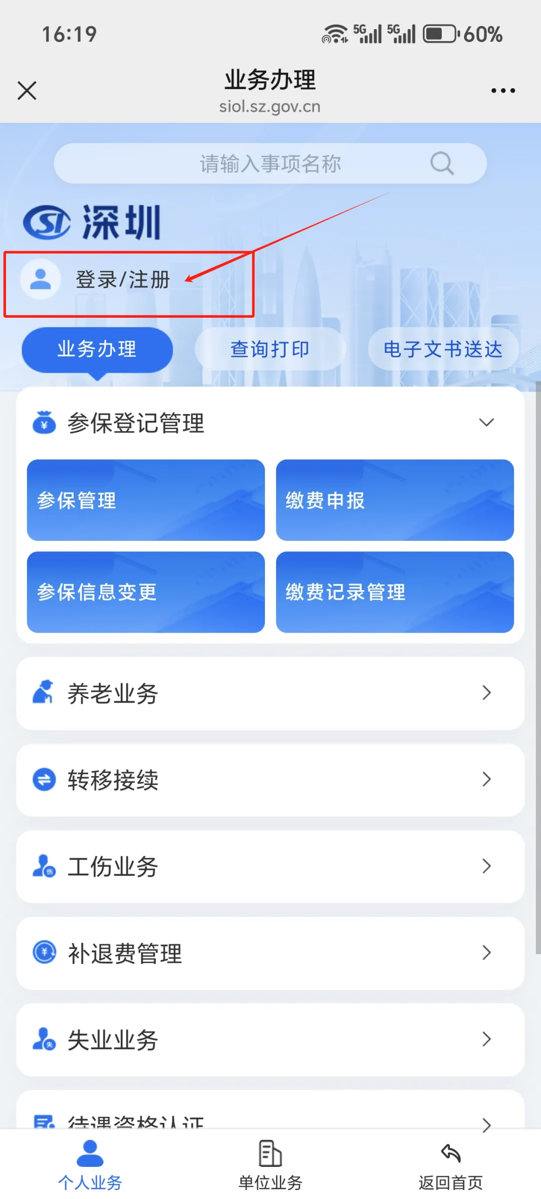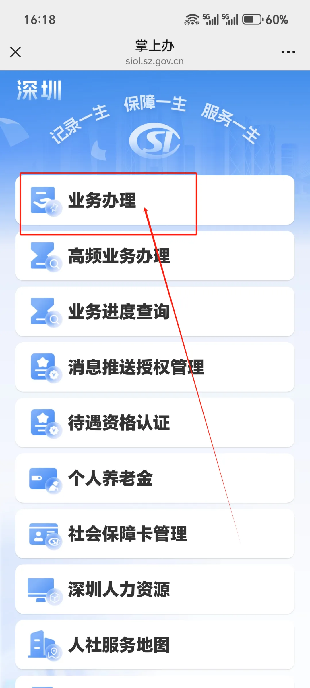 点击“业务办理”