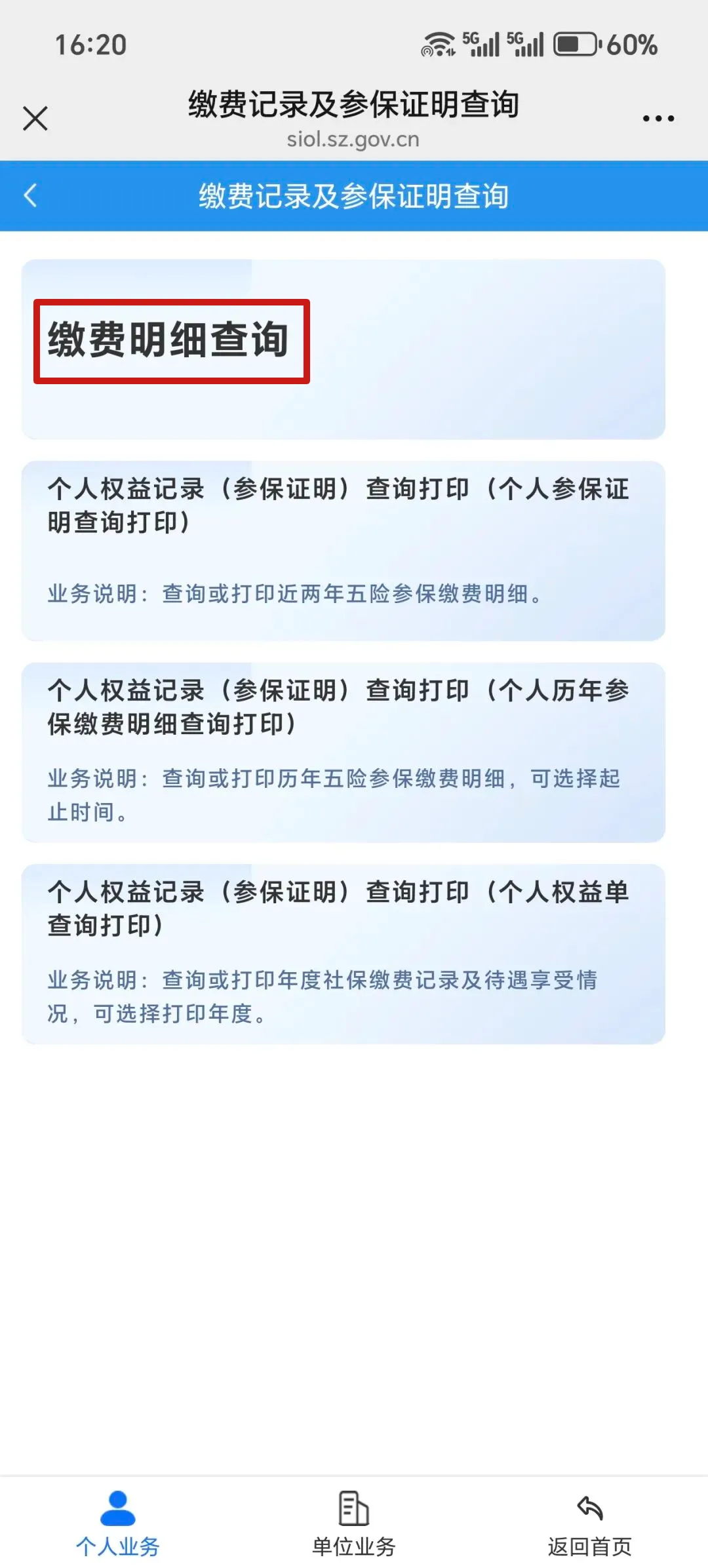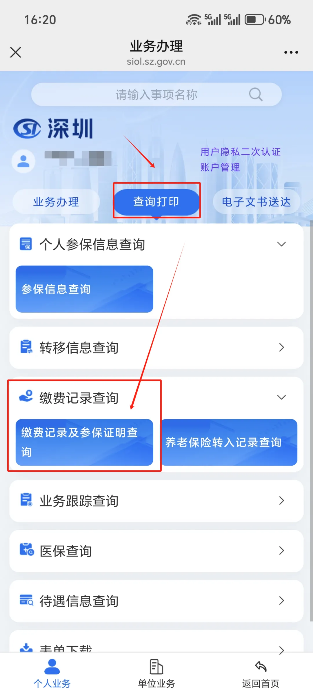 选择“缴费记录及参保证明查询”