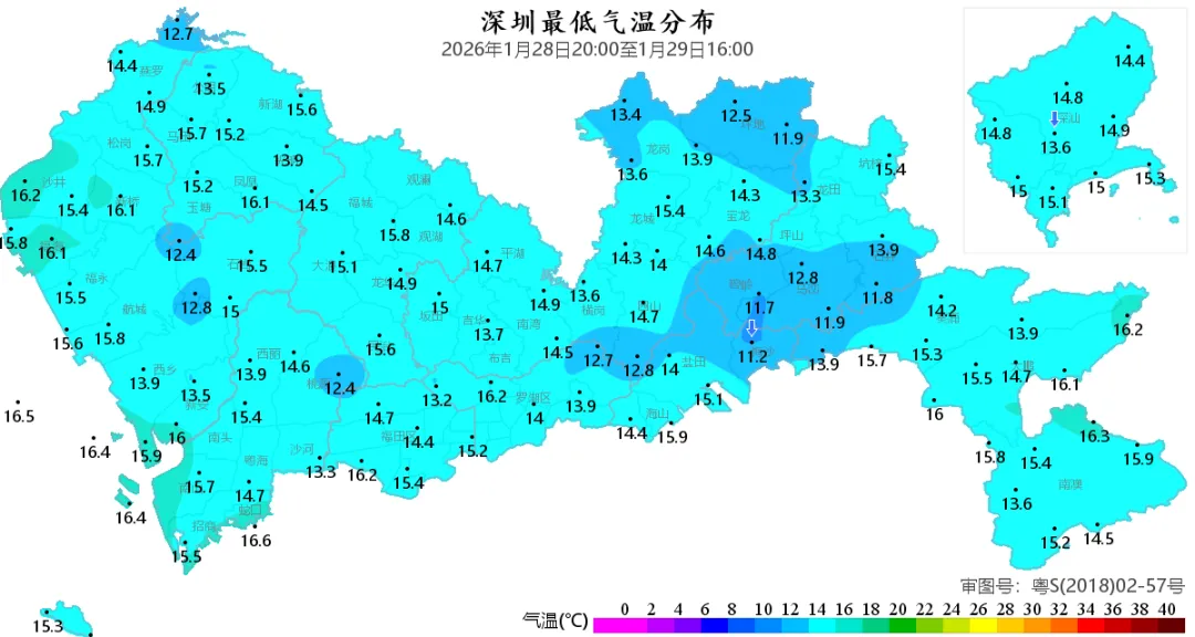 全市日最低气温普遍在14℃-15℃