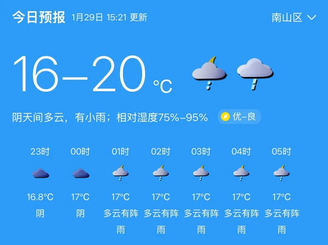 今日南山晴雨已播报