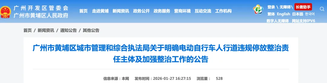 四、倡导文明出行。广大电动自行车驾驶人应自觉遵守《广州市电动自行车管理规定》及本公告要求,将电动自行车规范停放在指定停放区内,共同维护人行道通行秩序与城市环境。