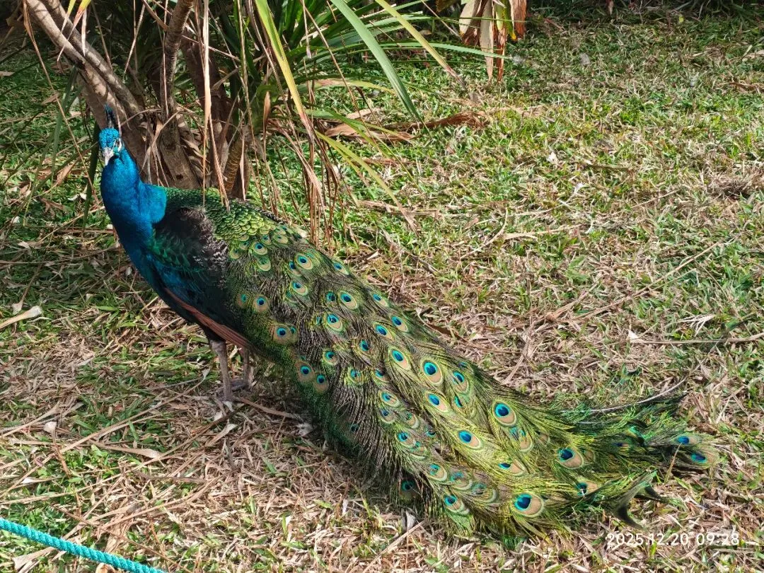 再往前面,进入一个特别的区域,该区域四周包括顶部都有网围住,但因被围住的空间区域非常大,以致人在里面基本没有感觉到围网,这样游客和鸟就同在一个区域里,可以与鸟类有更近距离的接触,有更好的体验。里面很多颜色鲜艳的孔雀,在游客身边自由地走过,也有鸵鸟等大型鸟,还有很多其他鸟类在自由地飞翔。