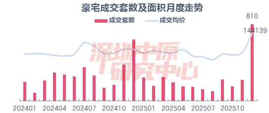 12月份成交量较高,主要为绿景白石洲璟庭、深圳湾澐玺、保利瑧誉项目。