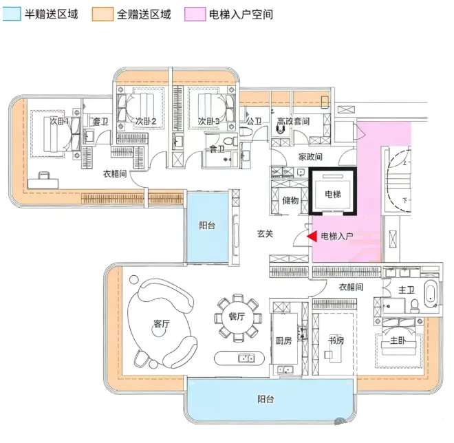 项目预计3月入市,推出建面约139-194㎡的4+1房纯大户型,采用2梯2户或2梯3户设计,仅151套房源。预计售价13-14万/㎡,总价区间约为1800万-2600万。