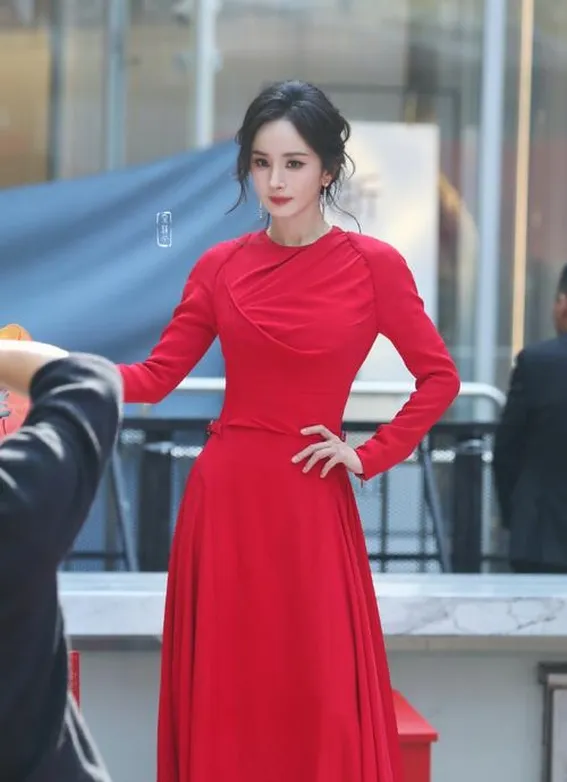 杨幂深圳出席雅诗兰黛活动,一袭红裙发簪低挽,美到让人忘记呼吸