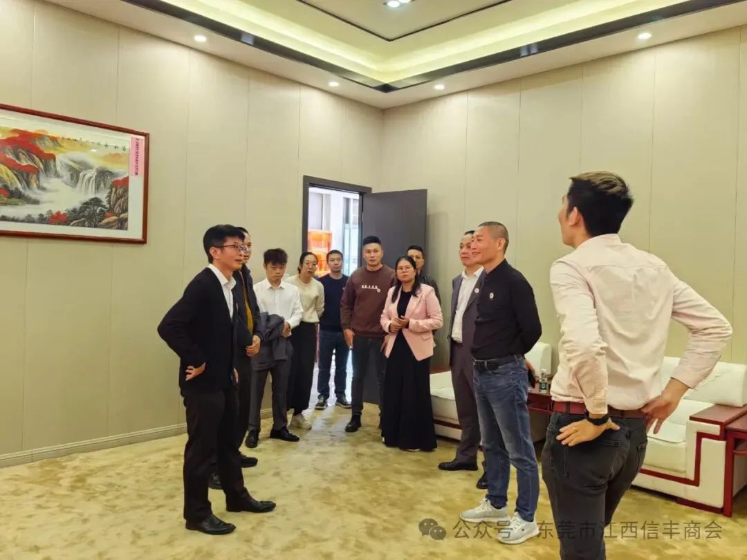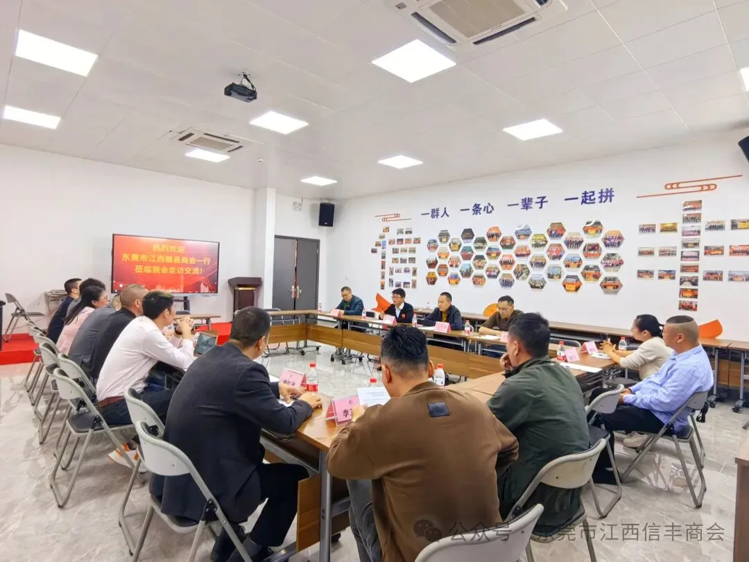 2024年11月30日,东莞市江西赣县商会执行会长李平,秘书长肖诚飞,等十余人一行来访我会走访交流。我会执行会长陈厚敏,秘书长肖胜明,常务副会长杨望彪、黄春裕等人予以热情接待。