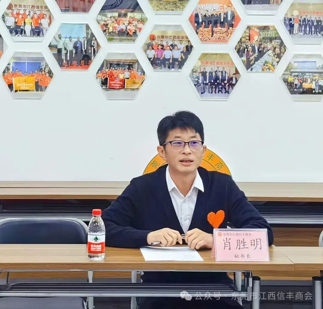 我会秘书长肖胜明首先对东莞市江西赣县商会一行的到来表示热烈欢迎。并详细介绍了商会的基本概况及“一部一队一院三委六区”组织架构。他表示,在未来的发展中,期待兄弟商会之间通过互动和交流,加强联系和合作。