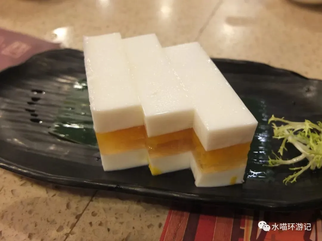 它家有一道香芒夹心椰汁糕,椰香芒果味儿十足,中间的夹层用了特殊手法,尝起来会有一种沙沙的口感,非常特别。广州之光NO.3,五星重磅推荐。