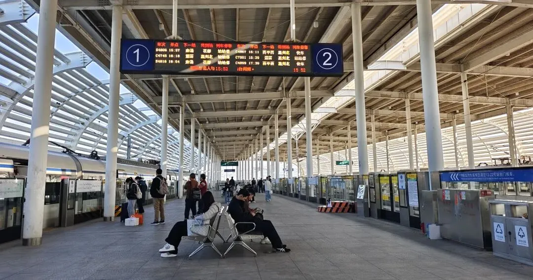 从深圳到东莞的城际列车,与北京到天津的不同,介于高铁与地铁之间,有自己完整的系统。有的车次按座位号售票,但有的车次就像地铁公交一样。检票进站也是有严格的时间限制。站台上有候车座位。