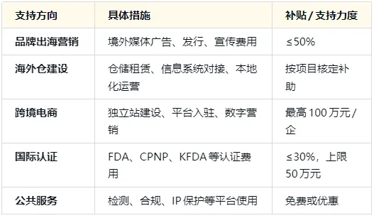 - 对企业在境外主流媒体投放广告、开展品牌推广产生的发行费、宣传费,按不超过50%比例给予补贴;