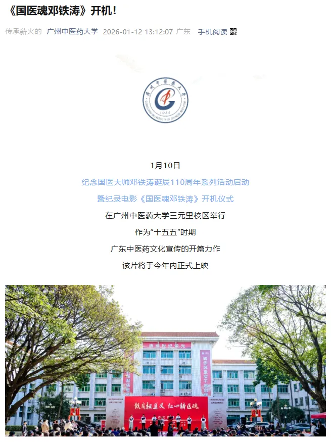 >媒体报道 | 广州中医药大学:《国医魂邓铁涛》开机!