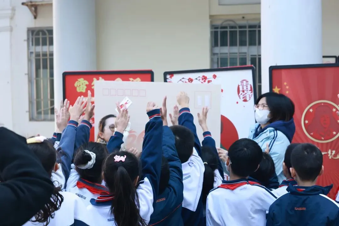 揭牌仪式后,师生们有序参与体验活动:一笔一划写下暖心书信,盖上专属纪念邮戳,驻足参观雷锋事迹展览。在沉浸式的体验中,雷锋精神悄然融入心间。