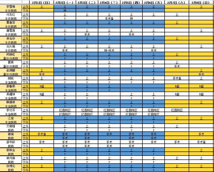 深圳市妇幼生殖中心(2月1日—2月8日)医生排班表