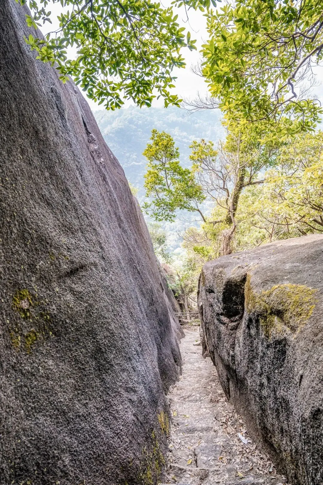 徒步前行,我们将来到形似鹅首的鹅公髻。这里是天然的地质教科书,沿途可见花岗岩历经亿万年风化形成的石蛋、石柱。穿越“一线天”时,两侧峭壁耸立,仅留一线天光,堪称造化鬼斧神工。