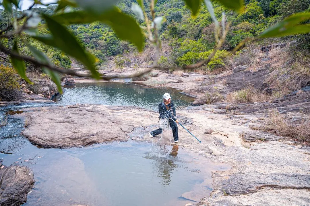 打鼓嶂,则藏着深圳荒野的静谧一面。穿过树林,你会遇见碧绿的潭水和从高处落下的瀑布。它没有梧桐山的名气,却安静得像世外桃源。