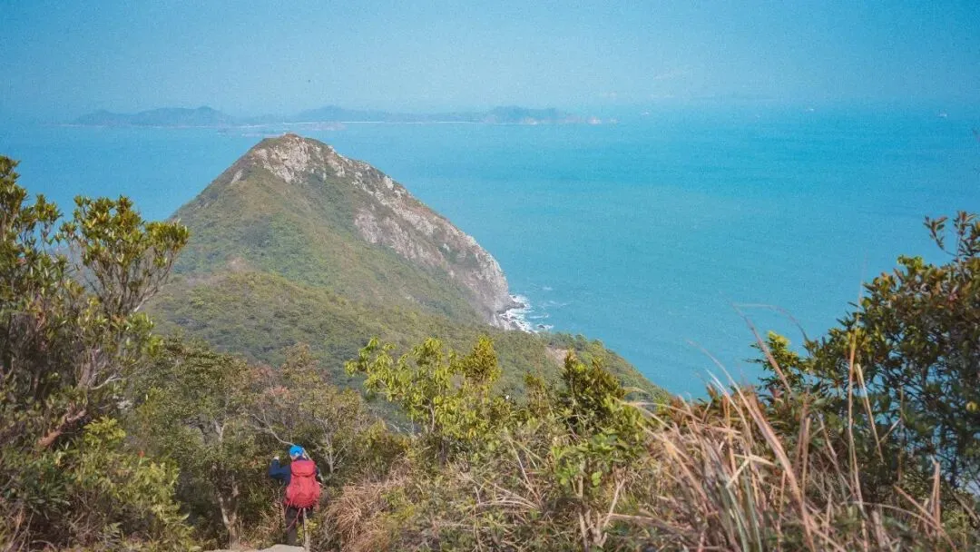 今天我们将要徒步的是鲲鹏径第 20 段,也就是最后一段。从东涌出发,途径三角山,直攀到重点的七娘山大雁顶。大雁顶海拔 801 米,是七娘山的副峰。山径全是土路,十分崎岖,而且坡度较大,需要一定体力去完成。沿路的风景非常优美,一直饱览无边际的海景,被很多山友认为是鲲鹏径风景最美的一段。