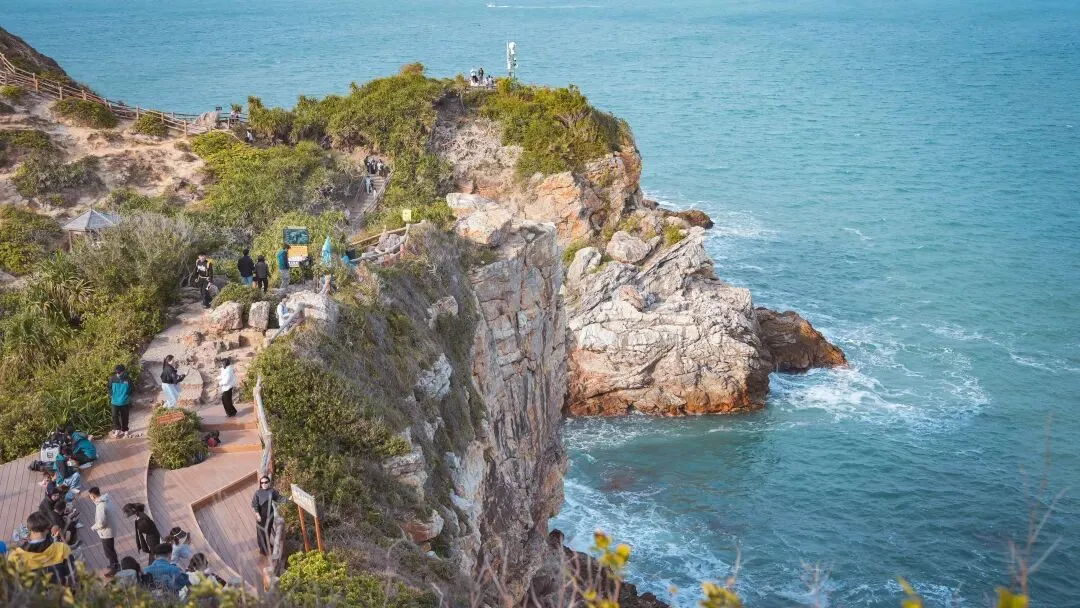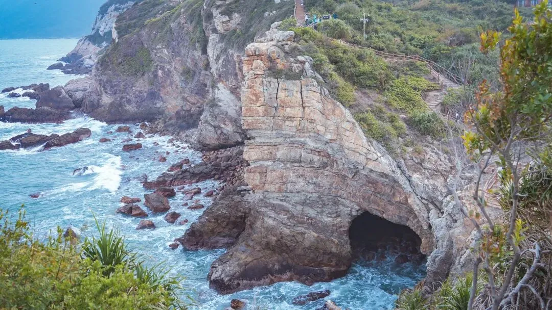 到达鹿嘴山庄后,可以参观电影《美人鱼》的拍摄地人鱼洞,这里有绝美的悬崖美景,陡峭的悬崖加上激流的海浪,随手一拍都是海岛大片。