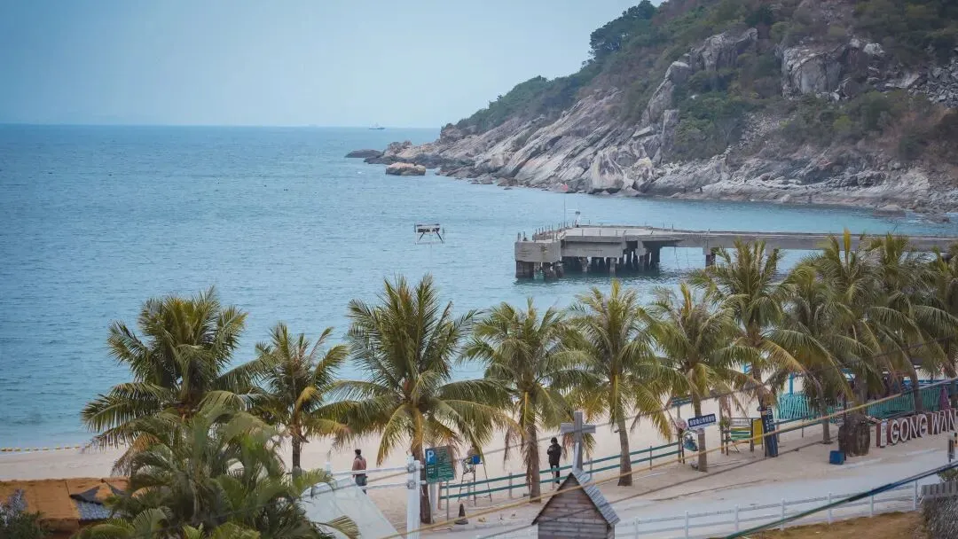 东望,大亚湾浩渺无垠,三门岛、辣甲岛如碧玉散落。