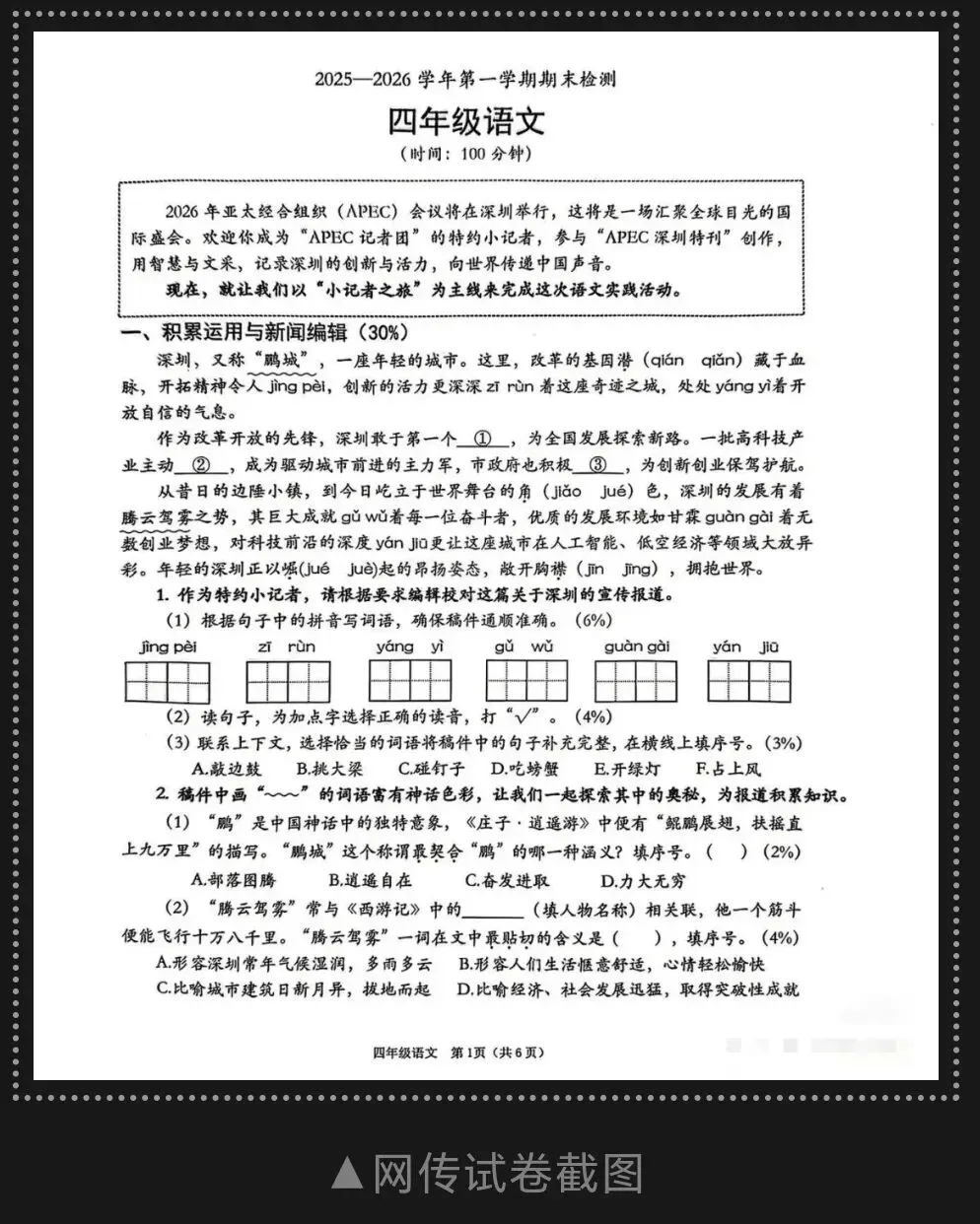 当深圳非毕业年级期末统考的“紧箍咒”悄然松开,南山区堪比“公务员行测”的APEC主题试卷、福田区让家长直呼“懵圈”的紫花风铃木连线题,恰似一颗石子投入教育的湖面,激起层层热议的涟漪。(备注:我家四年级哥哥的学校今天举办第一学期散学典礼)
