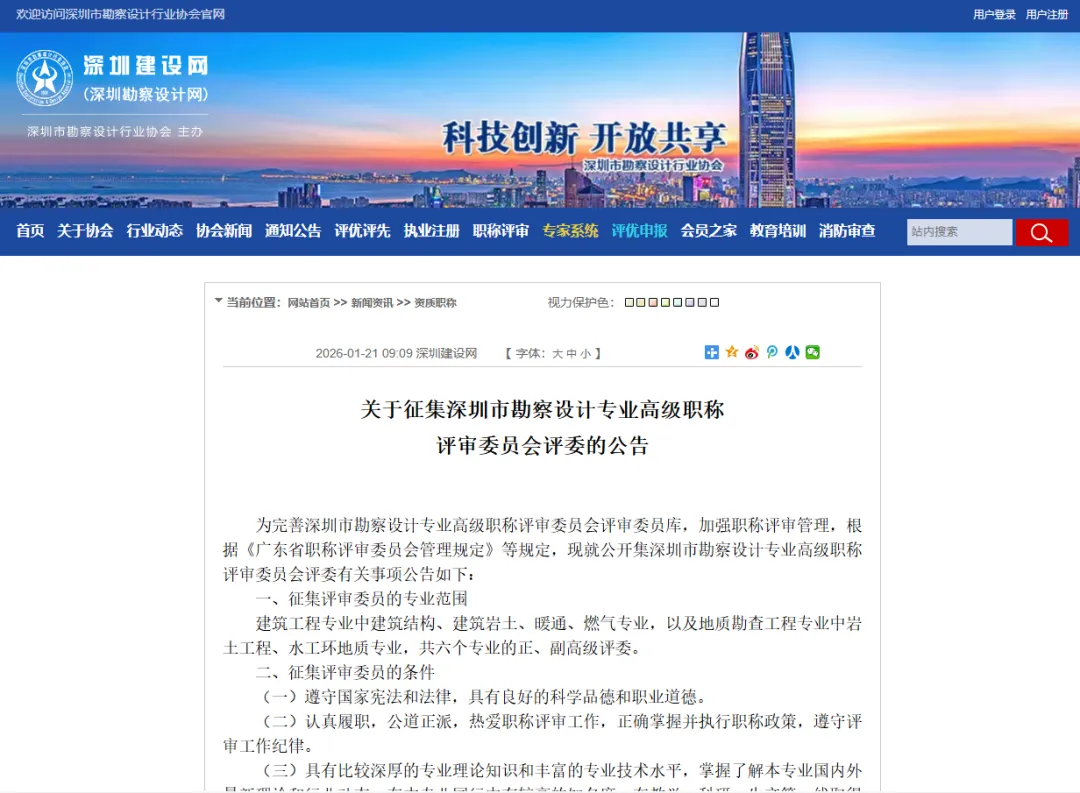 深圳建设网深圳市勘察设计专业高级职称评审委员会