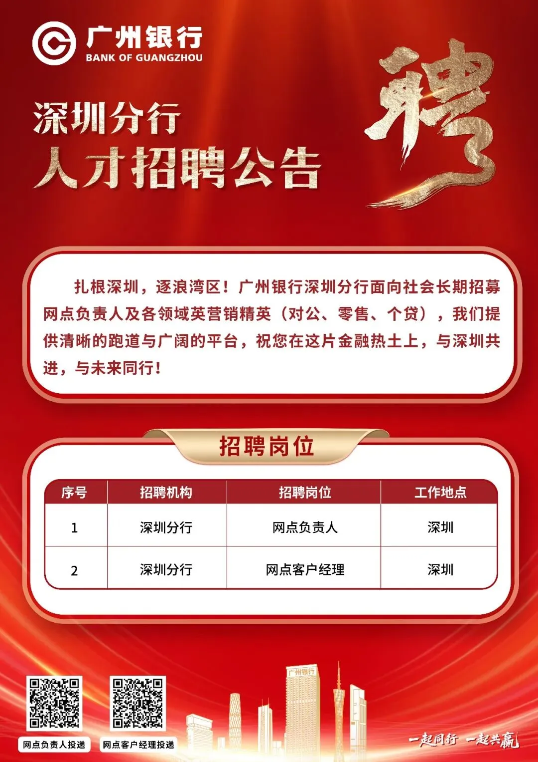 >社招 | 广州银行深圳分行长期招聘(深圳)