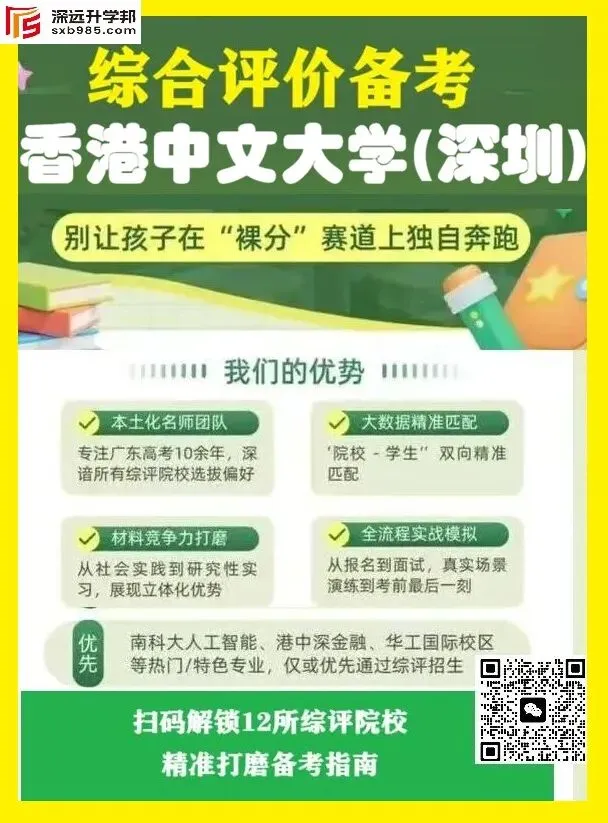 对于想让孩子留深深耕医学领域的家庭而言,香港中文大学(深圳)医学院无疑是优选标杆。这所深耕粤港澳大湾区的国际化医学院,以本土高端人才培养为核心,配套优质医疗资源,更开通多元招生渠道、设立丰厚奖学金,为学子铺就成长快车道。作为深港合作的医学教育典范,港中深医学院承袭香港中文大学顶尖医学培养体系,融合国际办学理念,致力于培育兼具国际视野与人文情怀的医学创新人才。学院配备超豪华师资团队,100%教师拥有国际一流高校经历,涵盖3位诺贝尔化学奖得主、12位国内外院士,更有三所诺贝尔奖研究院向本科生开放,让学子在前沿科研氛围中成长。同时,建筑面积59万平方米、拥有3000张床位的附属医院即将竣工,为临床实践筑牢根基。院校实力硬核,招生渠道亦兼顾多元与精准。本科阶段采用“统招+综合评价”双轨模式,满足不同学子需求。统招方面,考生可通过夏季高考报考理科试验班,大一完成专业选择,临床医学(6年制)、生物信息学、药学等核心专业均可填报,毕业后临床医学专业可获双学位认证,兼具内地执业与国际发展资质。综合评价则面向广东、浙江、上海、山东、福建、江苏6省市,以“高考成绩+校测表现+学业水平”综合考量,为综合素质突出的学子开辟绿色通道。通过该渠道录取的考生,将与统招学子享受同等优质资源,更能凭借校测中的表现展现学科潜力与综合素养。为减轻学子经济压力、激励学术深耕,学院设立多层次奖学金体系,覆盖本硕博全学段。本科阶段有专属“鹍鹏奖学金”助力拔尖人才成长;研究生阶段福利更为丰厚,校长奖学金提供每年税后18万生活补贴,一等奖学金豁免全额学费(11.5万元/年),二等奖学金豁免半额学费,兼任助教或研助还可额外获得每月约5000元补贴,最长资助4年。此外,博士生还可角逐吴文政王月娥奖学金等专项奖项,获15万港币三年期资助及国际学术展示机会。从全英文授课体系到三导师制护航,从一流科研平台到完善临床资源,从多元报考路径到丰厚奖学金支持,港中深医学院全方位为深圳本土医学人才赋能。对于怀揣医学梦想、计划扎根大湾区的学子而言,这里既是成长沃土,更是逐梦舞台。有意向的家庭可关注深远升学邦,解锁更多报考详情。