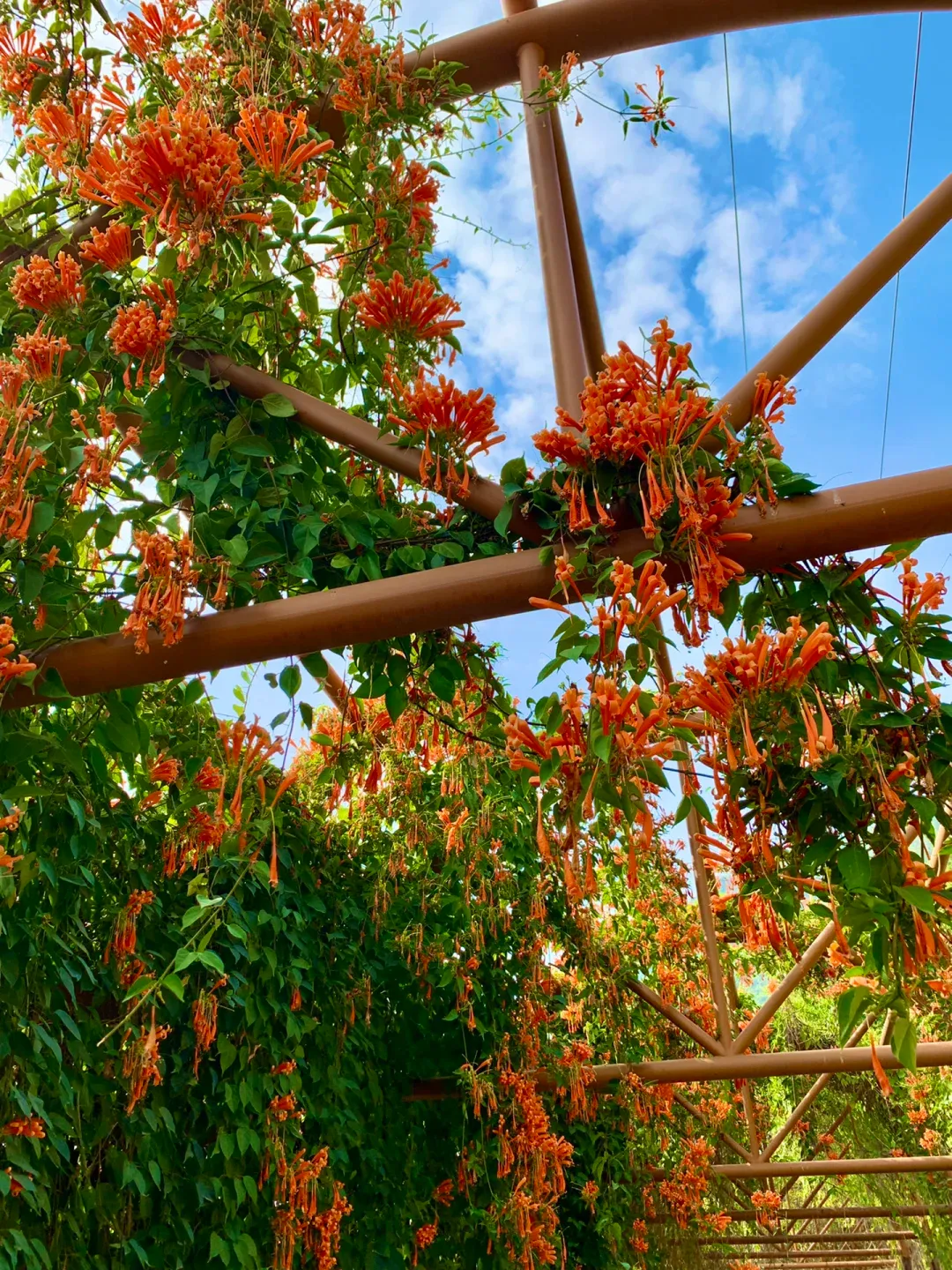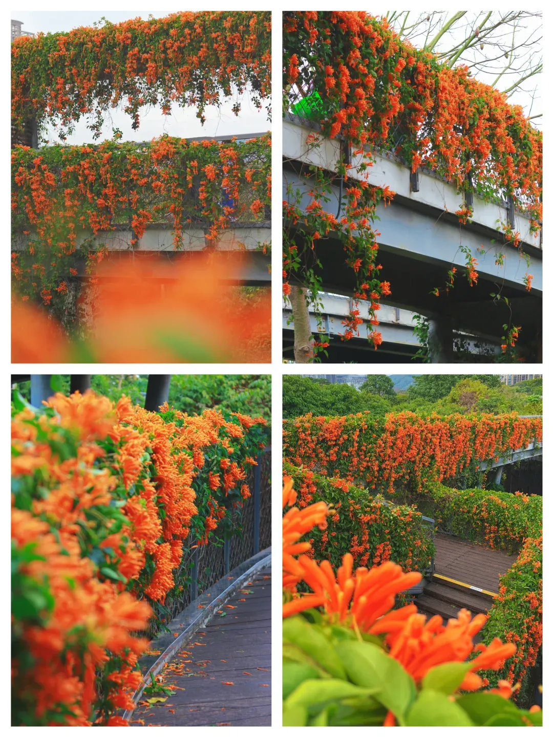 ✨推荐理由:花期预计持续到2月末,“花瀑长廊”集中在东门,玫瑰园转角还有一面弧型炮仗花墙。下午16点左右去,光线柔和,能拍出绝美的炮仗花照片。